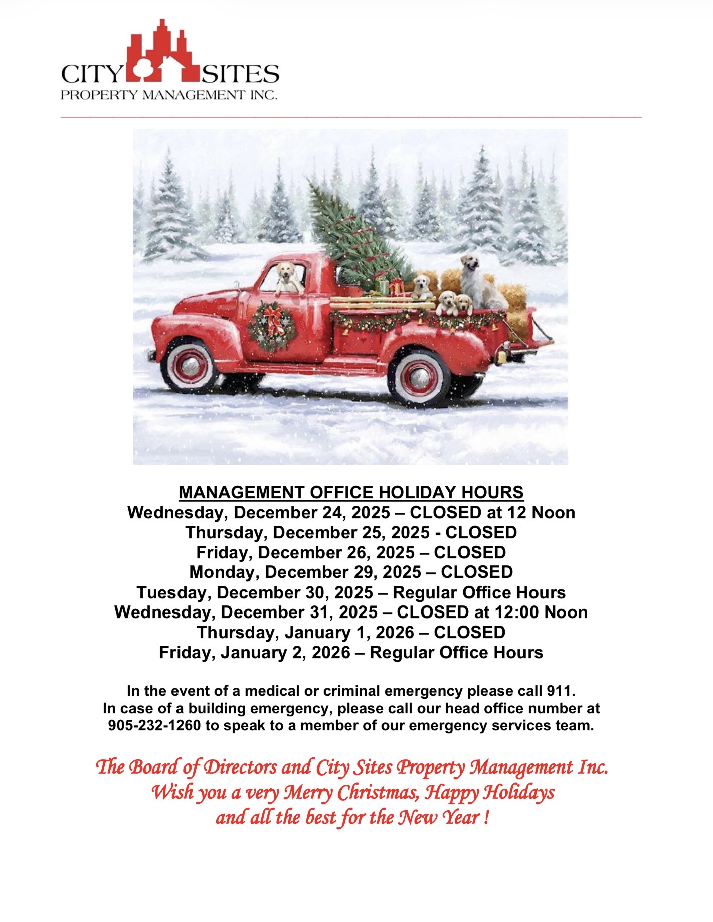 Management Office – Holiday Hours Josie Harker December 15, 2025 Uncategorised Screenshot ← Previous post Next post →